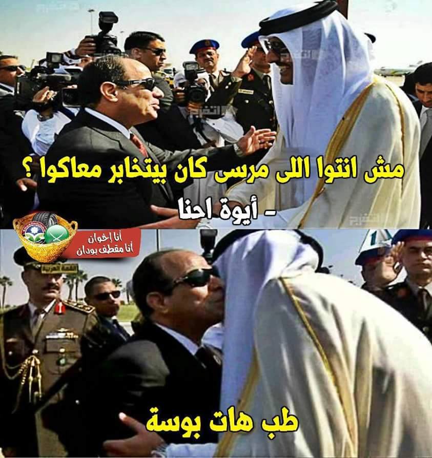 وذكر المغردون في تعليقاتهم لقاء السيسي 28 فبراير 2015م بتميم بن حمد آل ثاني أمير دولة قطر، والذي قدم خلاله اعتذارًا عن الإساءات التي صدرت ضد والدته الشيخة موزة، من وسائل الإعلام المصرية.