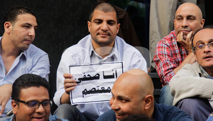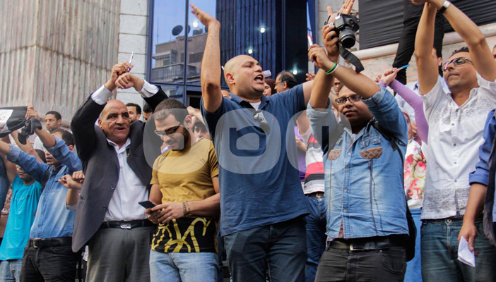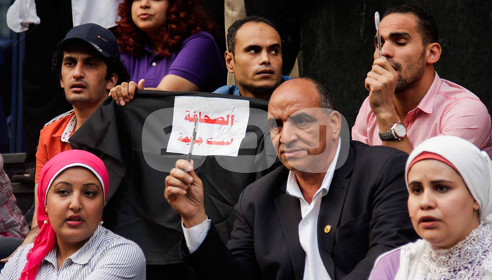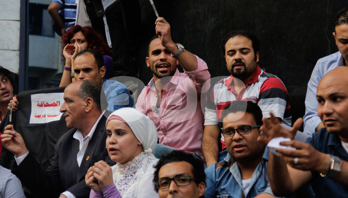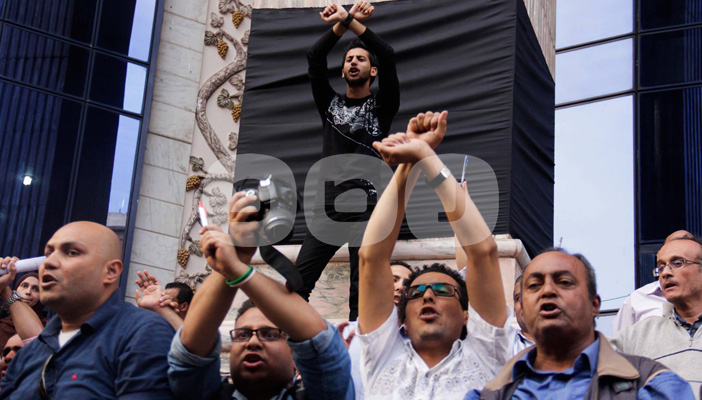 نظم بعض الصحفيين المعتصمين بنقابة الصحفيين وقفة احتجاجية، مساء اليوم على سلالم النقابة رفضا لمؤتمر الأهرام المسمى بتصحيح المسار والرافض لقرارات الجمعية العمومية.