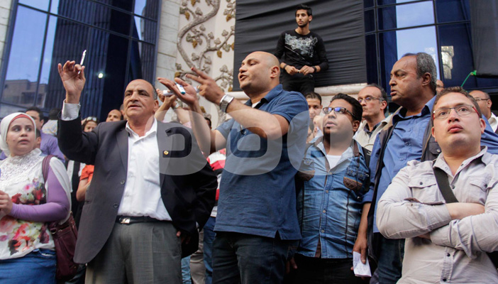 في مقابل اجتماع أسرة الصحفيين بمؤسسة الأهرام، نظم بعض الصحفيين المعتصمين بنقابة الصحفيين وقفة احتجاجية، مساء اليوم، على سلالم النقابة رفضًا لمؤتمر الأهرام المسمى بتصحيح المسار، والرافض لقرارات الجمعية العمومية.