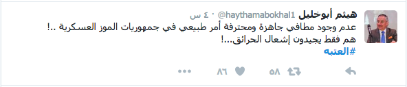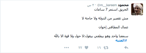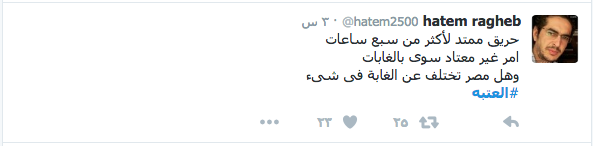 وسخر رواد “تويتر” من تأخر إطفاء الحريق، وجاءت تعليقاتهم كالتالي: