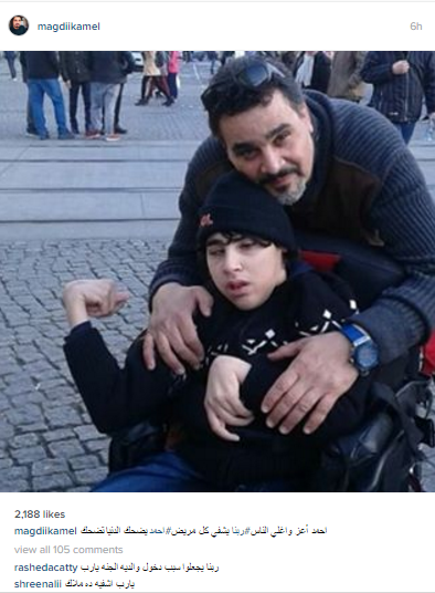 نشر الفنان مجدي كامل صورة تجمعه بنجله الأكبر "أحمد"، عبر حسابه على موقع التواصل الاجتماعي "إنستجرام" أثناء رحلة علاج خاصة بألمانيا.
