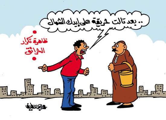 نشر موقع “اليوم السابع” رسمًا يسخر من ظاهرة تكرار الحرائق.