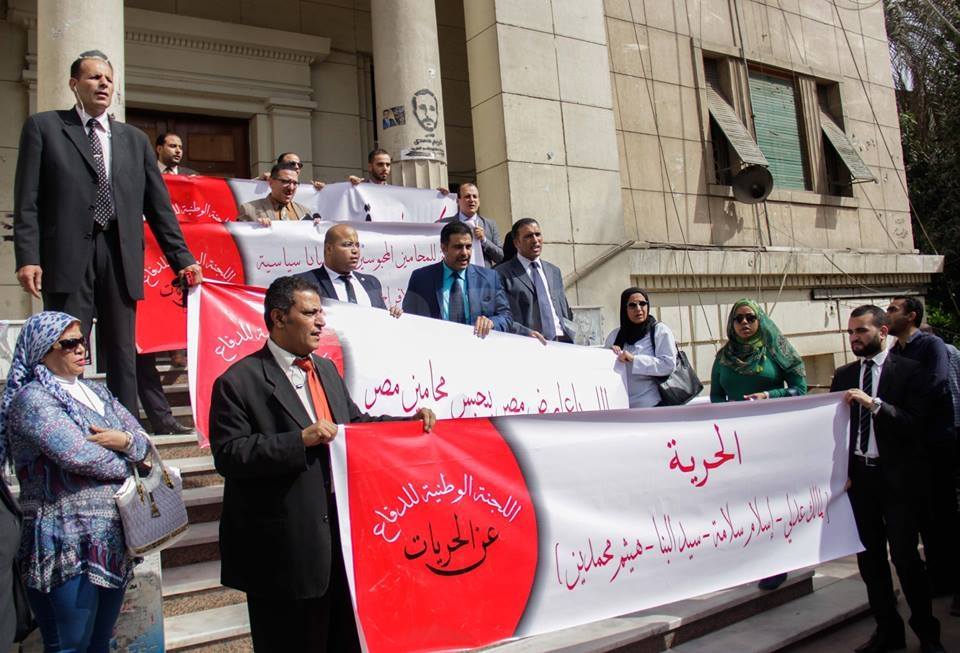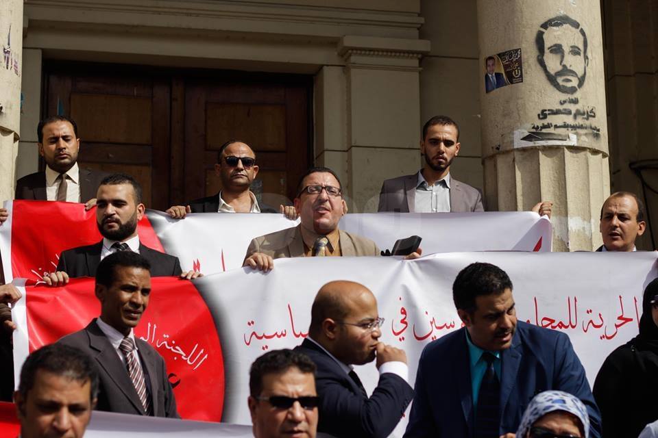 نظم عدد من المحامين وقفة احتجاجية، عصر اليوم داخل مقر نقابة المحامين بوسط القاهرة رفضا لاعتقال زملائهم وتعرضهم لانتهاكات بأماكن الاحتجاز.