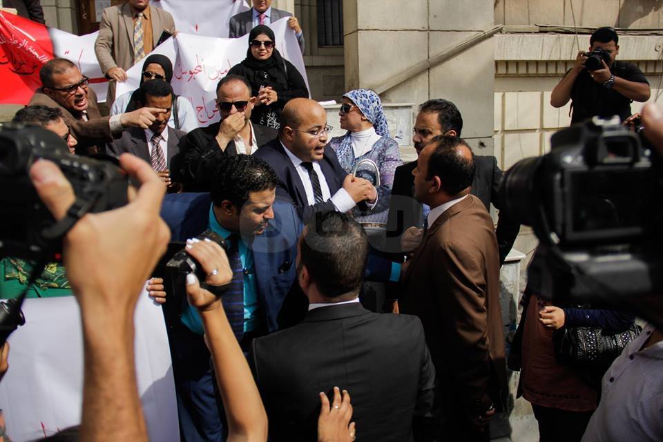 وقام عضو مجلس نقابة المحامين، محمد أبو كوع أثناء الوقفة بالهجوم على المشاركين، ووصفهم بالمأجورين الذين يسعون إلى خراب النقابة، الأمر الذي أثار حفيظة المشاركين وجعلهم يطالبون بفتح باب النقابة الرئيسي والمغلق منذ عامين للخروج والتظاهر أمام النقابة رفضا لما فعله أبو كوع الذي أكد أنه سيتم تحويل المشاركين بالوقفة جميعا إلى التحقيق.