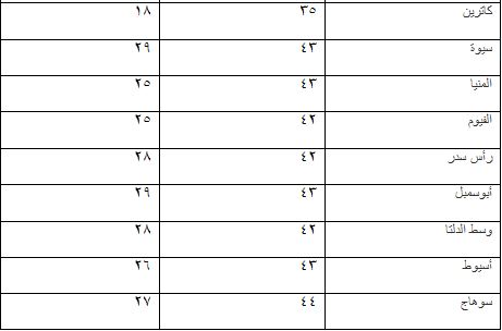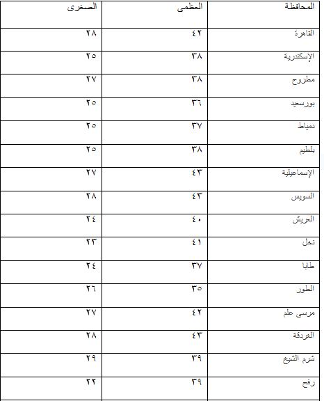 بيان بدرجات الحرارة المتوقعة على محافظات ومدن مصر: