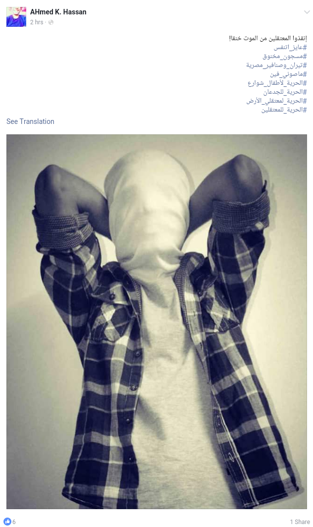 ويعلق الناشط محمد محمود :” اول 3 ايام كنت محطوط انا و عبد الرحمن حمزة و ابو داوود في مكان اسمه ” السلخانة “، وهي عبارة عن حجرة ضيقة جدا جدا بها حوالي 22 مسجل خطر.