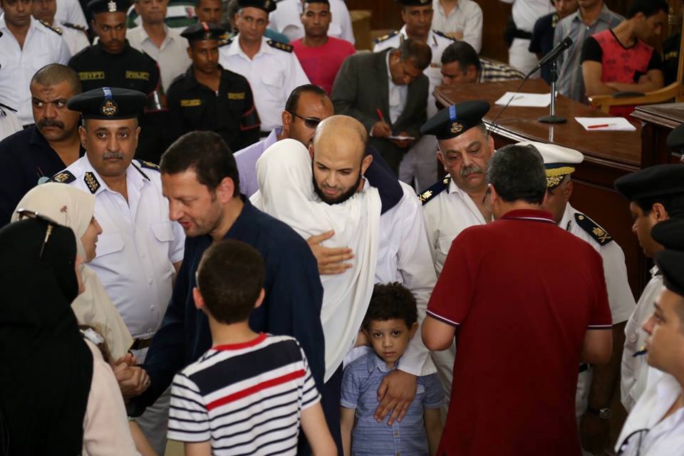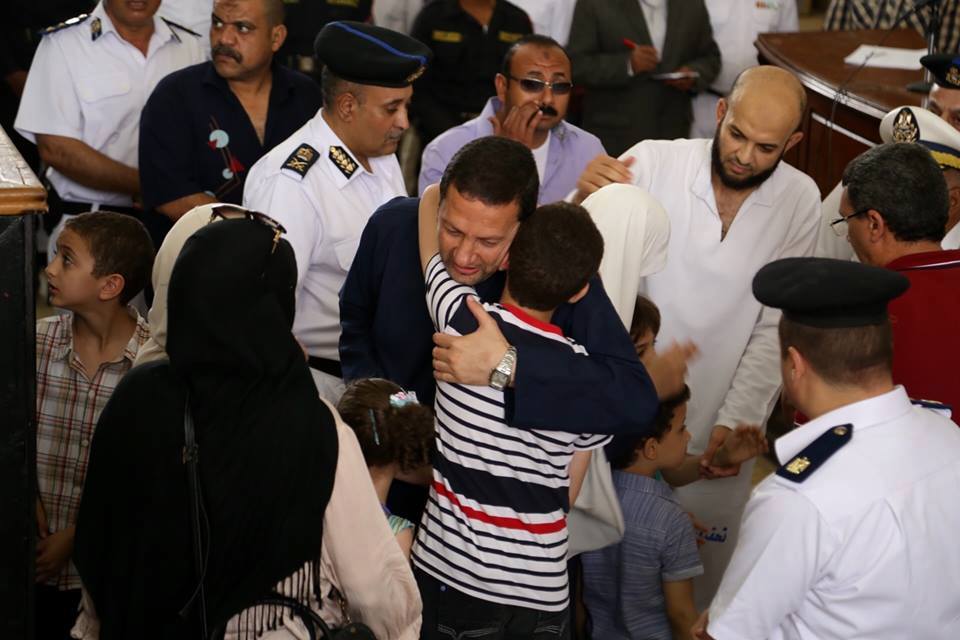سمحت محكمة جنايات القاهرة، للمرة الأولى، بدخول أطفال إلى حرم منصة المحكمة؛ حيث تمكنت ابنة باسم عودة، وزير التموين الأسبق، من الالتقاء بوالدها بحرم منصة المحكمة، كما تمكنت ابنة المتحدث باسم جماعة الإخوان الدكتور أحمد عارف من الالتقاء بوالدها داخل حرم المنصة.