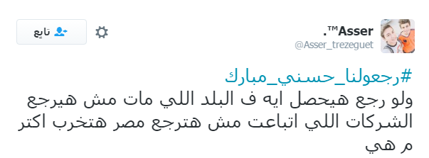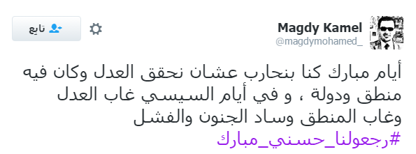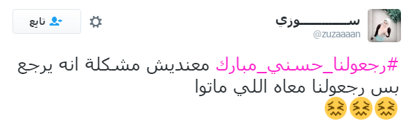هاشتاج “رجعولنا مبارك” يتصدر تويتر.. ونشطاء: بس رجعولنا اللي ماتوا
