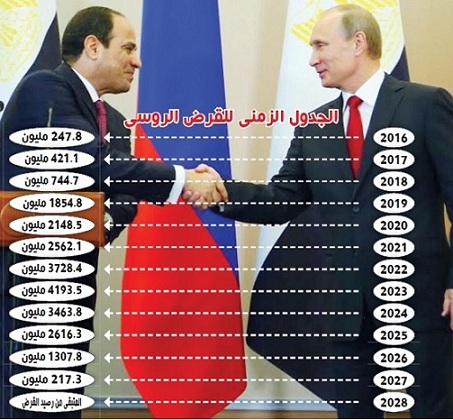 واشترطت الاتفاقية الروسية الأخيرة أنه في حال عدم سداد أي من الفوائد المذكورة خلال 10 أيام عمل، يحتسب المبلغ على أنه متأخرات، ويخضع لفائدة قيمتها 150% من معدل الفائدة الأساسي، ما يعد كارثة كبرى على أجيال قادمة، وتوريطا لمصر.