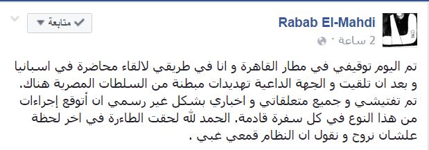 واختتمت رباب المهدي منشورها قائلة: “الحمد لله لحقت الطائرة في آخر لحظة علشان نروح ونقول إن النظام قمعي غبي”.