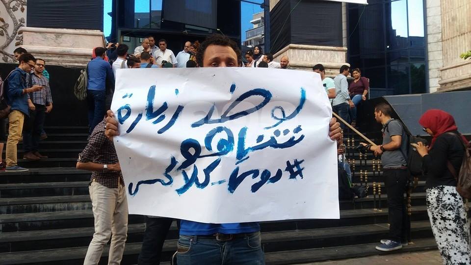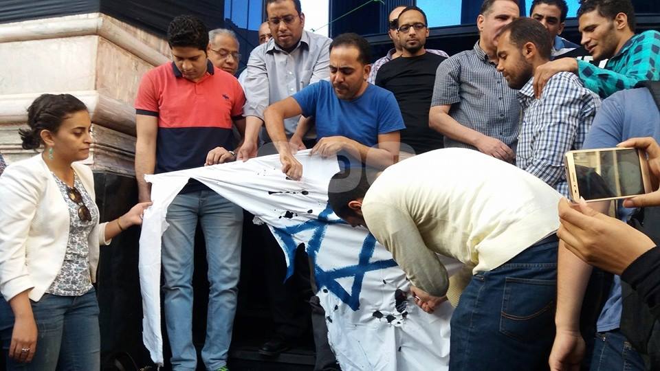 نظم عدد من النشطاء، وقفة احتجاجية على سلم نقابة الصحفيين، اليوم الخميس بعنوان “لن تمروا”، حول توجه وفد من الحكومة الإسرائيلية لمصر، في جولة تحضيرية، لزيارة بنيامين نيتنياهو، رئيس الوزراء الإسرائيلي إلى مصر.