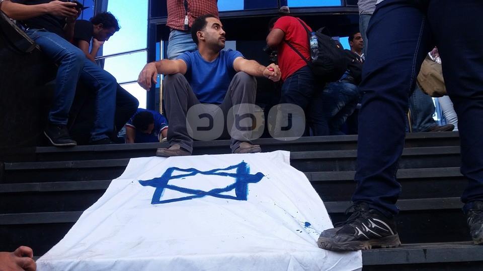 بالصور.. نشطاء يحرقون علم إسرائيل اعتراضا على زيارة نتنياهو لمصر