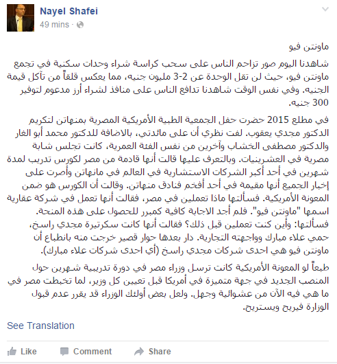 نائل الشافعي: “ماونتن فيو” إحدى شركات مجدي راسخ حما علاء مبارك