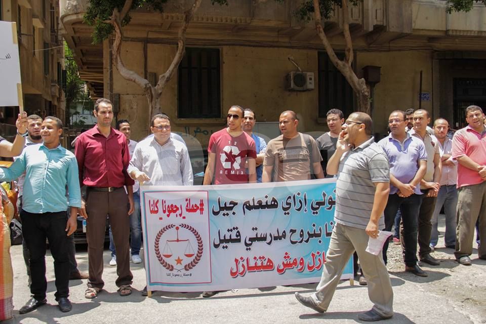 نظم المعلمون المغتربون، وقفة احتجاجية، ظهر اليوم، أمام مقر مجلس الوزراء بشارع قصر العيني؛ للمطالبة بعودتهم إلى محافظاتهم، بعد أن تم تعيينهم بمحافظات بعيدة عن سكنهم الأصلي.