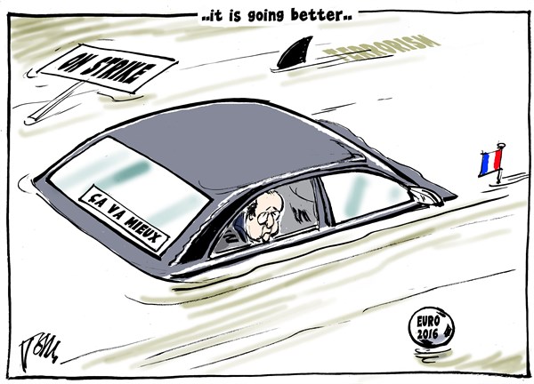 تناولت الرسوم الكاريكاتيرية اليوم، عدة قضايا مصرية وعالمية، وتصدر استقبال فرنسا يورور 2016م بالفيضانات، كاريكاتير اليوم.