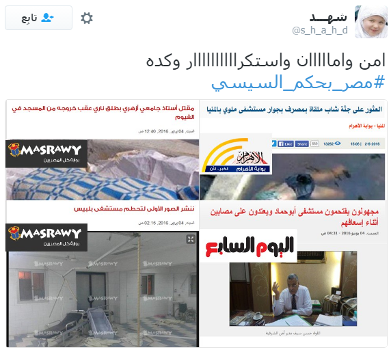دشن رواد مواقع التواصل الاجتماعي هاشتاجا تحت اسم “#مصر_بحكم_السيسي”، مع حلول الذكرى الثانية، لتولي عبد الفتاح السيسي الحكم في مصر، عقِب أحداث 30 يونيو التي أطاحت بمحمد مرسي.
