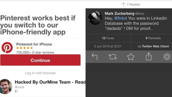قام فريق القراصنة الذي أطلق على نفسه اسم OurMine باختراق حسابات زوكربيرج من خلال التعرّف على اسم المستخدم وكلمة المرور الخاصّين به اللذين تم الحصول عليهما من قاعدة بيانات كلمات المرور التي تم تسريبها مؤخرًا من شبكة التواصل الاجتماعي لينكدإن LinkedIn ، وفق “AIT”