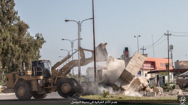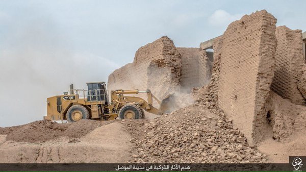 وأظهرت صور تداولتها حسابات مؤيدين للتنظيم على موقع التواصل الاجتماعي “تويتر”، أمس الثلاثاء، تفجير معبد “نابو” الأثري جنوب شرقي الموصل، واستخدام الجرافات في تدمير الموقع.