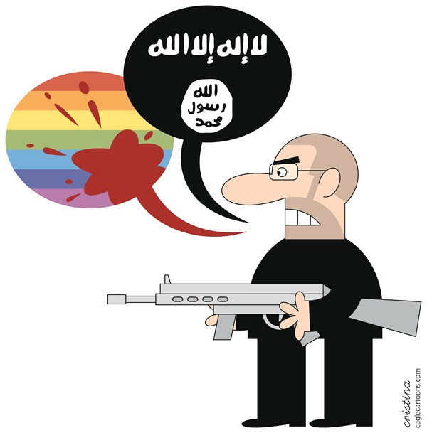 ونشر موقع كاجل للرسوم الساخرة عدد من الكاريكاتير اليوم في التعبير عن “هجوم “اورلاندو”.