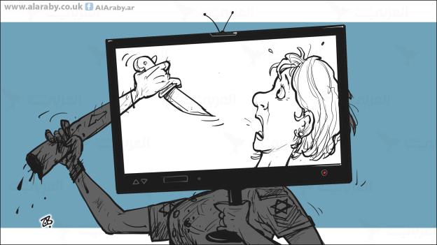 وعن تلاعب الإعلام الصهيوني في نقل الصورة للعالم، نشر “العربي الجديد” كاريكاتير “إعلام صهيوني”