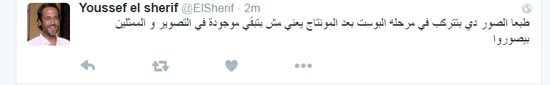 وأضاف: “طبعا الصور دى بتتركب فى مرحله البوست بعد المونتاج يعنى مش بتبقى موجودة فى التصوير والممثلين بيصوروا”.