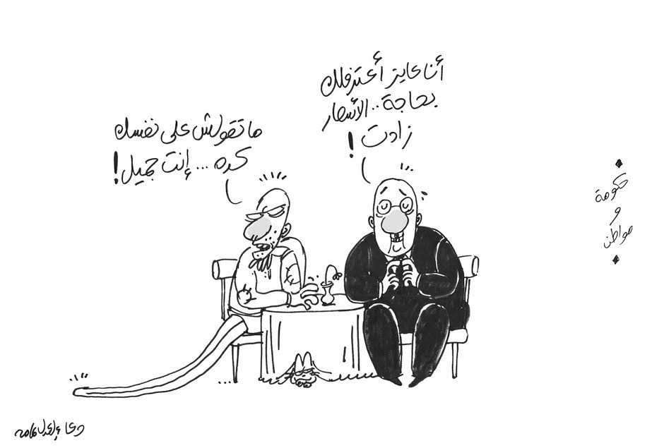 ونشر “المصري اليوم ” كاريكاتير يسخر فيه من رضا المواطنين بزيادة الحكومة للأسعار.