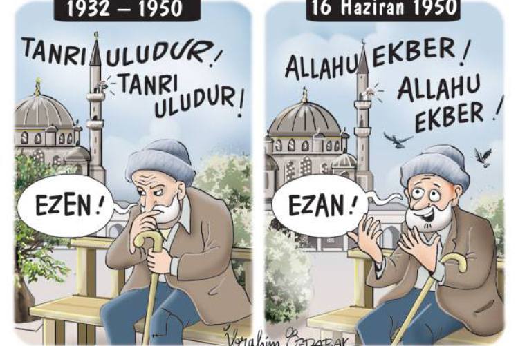 وفي ذكرى عودة الآذان إلى تركيا باللغة العربية اليوم ، نشر “تركيا بوست ” الكاريكاتير التالي:
