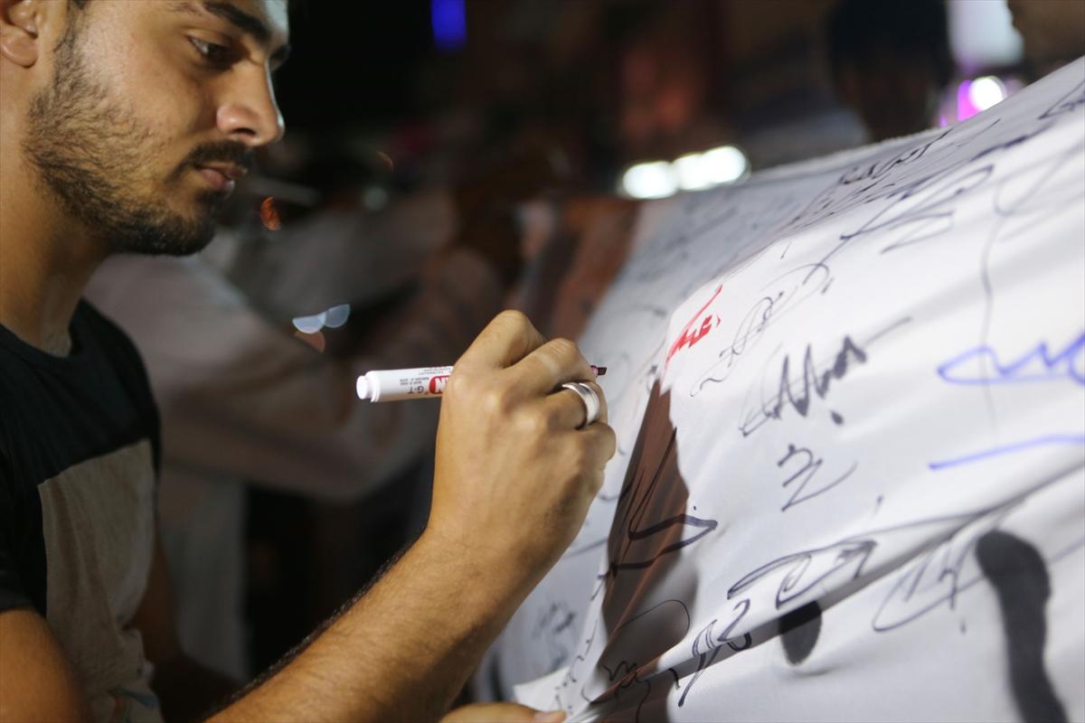 وأوضح العبسي أن المبادرة تهدف لجمع تواقيع على يافطات من مواطني الأردن في مختلف محافظات المملكة، تبدأ الساعة التاسعة والنصف بتوقيت مملكة الأردن، وتستمر لساعتين.