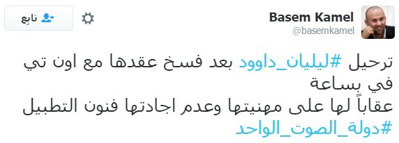 وقال البري على حسابه الشخصي على “فيس بوك”، اليوم الاثنين، إن “من حوالي ساعة ونص شرطة الجوازات رَحلت المذيعة ليلان داوود.. ليليان مضت النهاردة على إنهاء التعاقد مع قناة “أون تي في”، واللي كانت بموجبه حاصلة على الإقامة”.