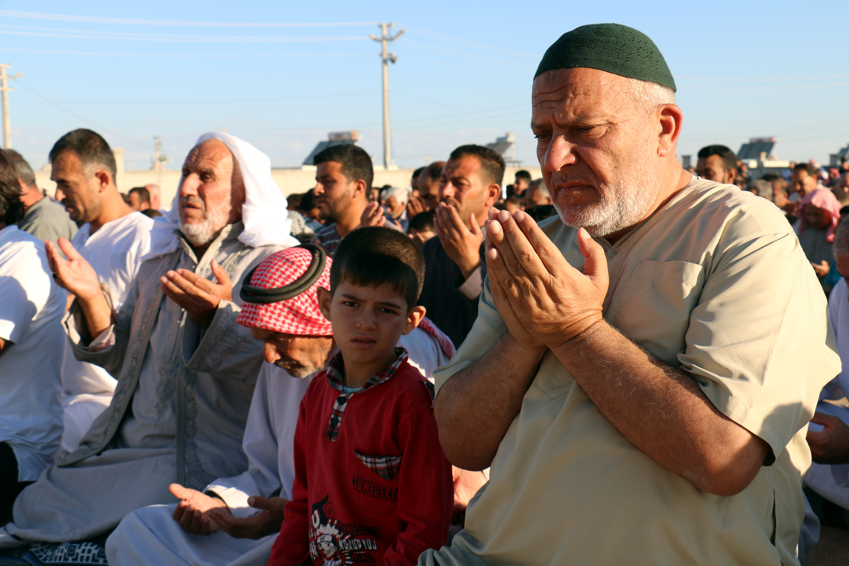 انقسم السوريون في صلاة عيدهم فمنهم من أداها الأربعاء داخل الأراضي السورية، والآخرون أقاموها على الحدود التركية يوم الثلاثاء، حيث أعلنت تركيا أن يوم الإثنين الماضي هو المتمم لشهر رمضان المبارك، ولكنهم اتفقوا على شيء واحد في عيدهم، هو الدعاء على من حرمهم الديار وقتل وشرد أسرهم.