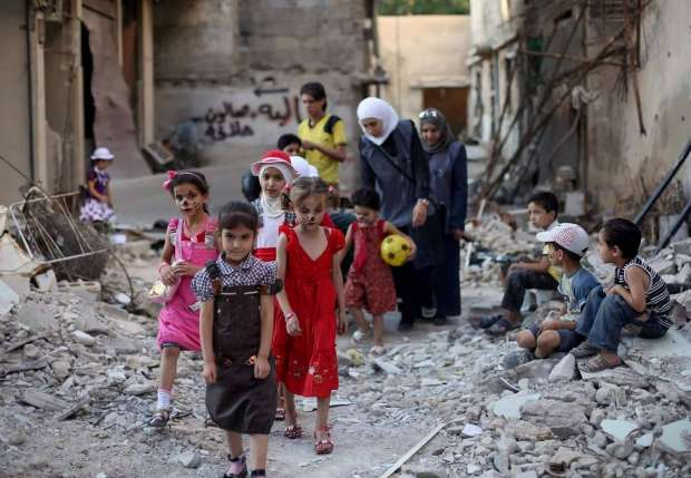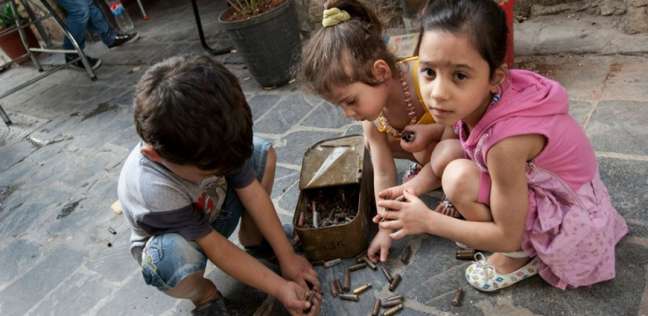 بالصور.. في عيدهم السادس تحت القصف.. أطفال سوريا يلهون بفوارغ الطلقات