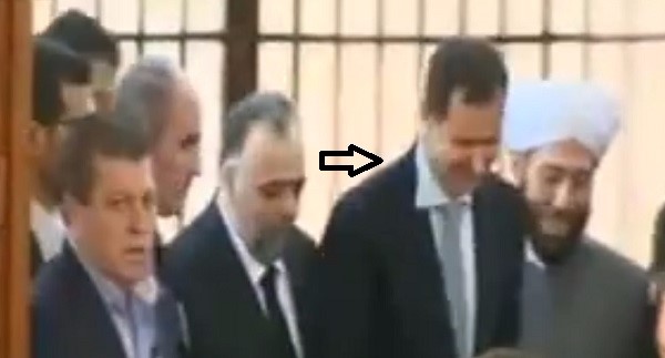 ورصدت الكاميرات ارتباك ملحوظ على الأسد، وأول تلك العلامات بدت في ياقة القميص التي ظهرت من فوق البدلة الرسمية، حيث خرجت من مكانها المفترض.