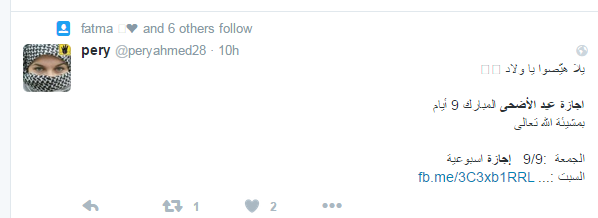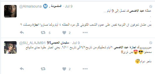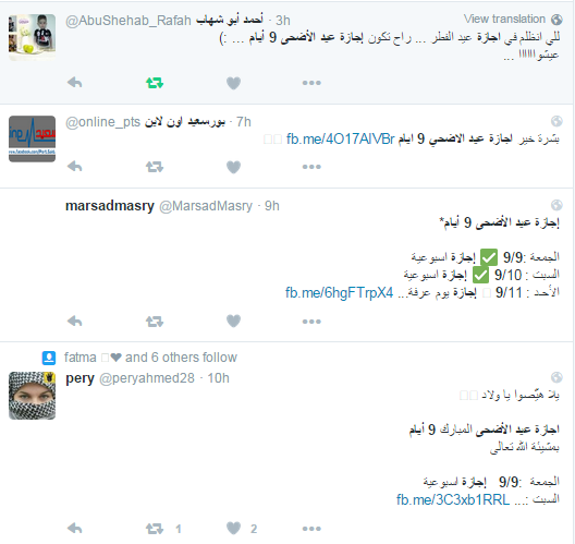 تبادل رواد موقعا التواصل الاجتماعي “فيس بوك” و”تويتر” الحديث عن أجازة عيد الأضحى والتي تمتد إلى تسعة أيام.