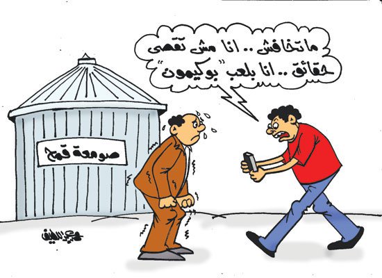 فرصد كاريكاتير  اليوم السابع، الهوس الذى أصاب المصريين من وراء لعبة البوكيمون، بالتزامن مع الأزمة الأخيرة حول الفساد الذى تم اكتشافه فى صوامع تخزين القمح.