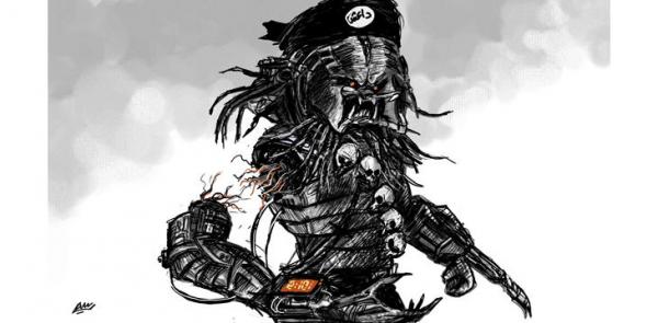 أما جريدة “الشرق الاوسط ” فنشرت كاريكاتير يصف به تنظيم الدولة ، بعد الهجمات المتعددة في عدد من الدول