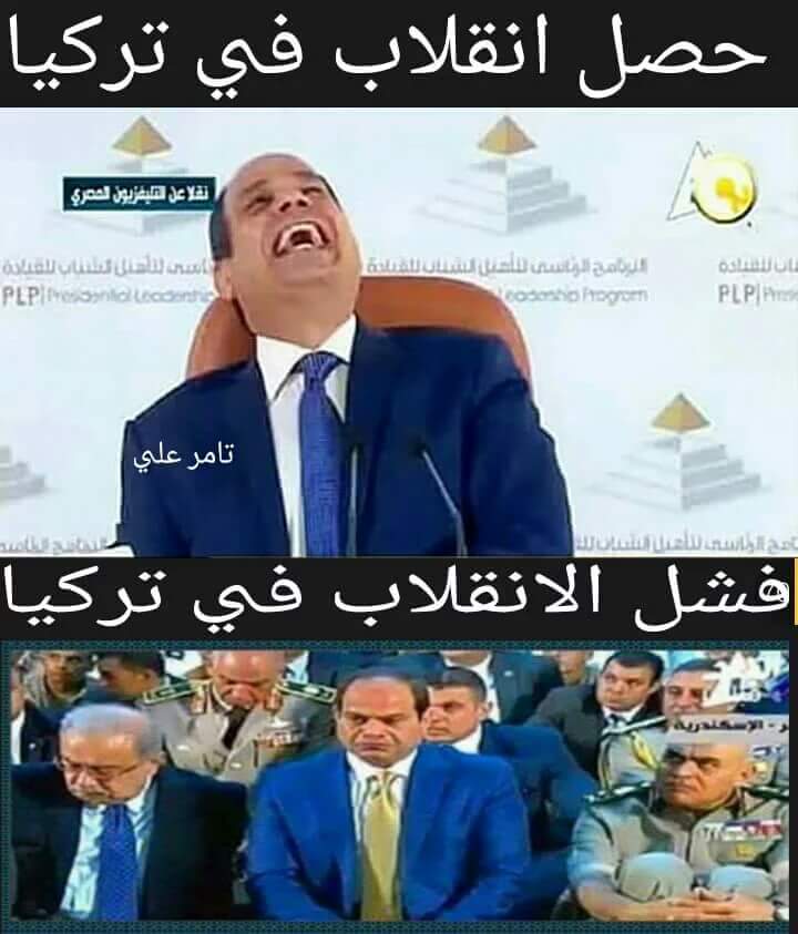 و قابل الشعب المصري خبر إسقاط الانقلاب في تركيا، بفرحة كبيرة، ونشروا كوميكسات تسخر من شماتة الجانب المصري في الرئيس التركي رجب أردوغان.