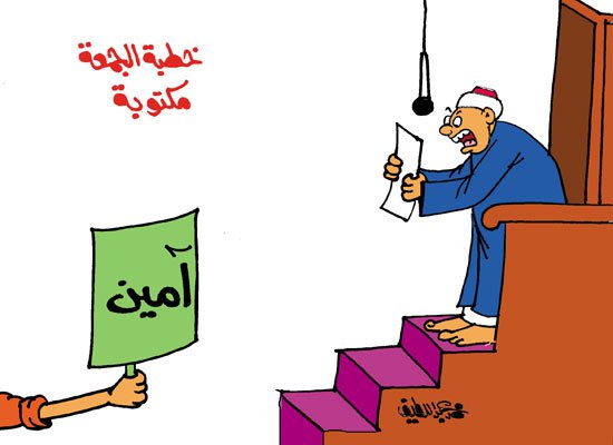و سلط كاريكاتير “اليوم السابع” الضوء على قرار وزارة الأوقاف بشأن خطبة الجمعة المكتوبة.