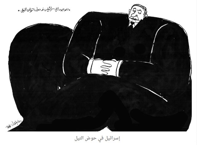 وعن توسع التواجد الإسرائيلي في دول حوض النيل، كان موضوع كاريكاتير “المصري اليوم”.