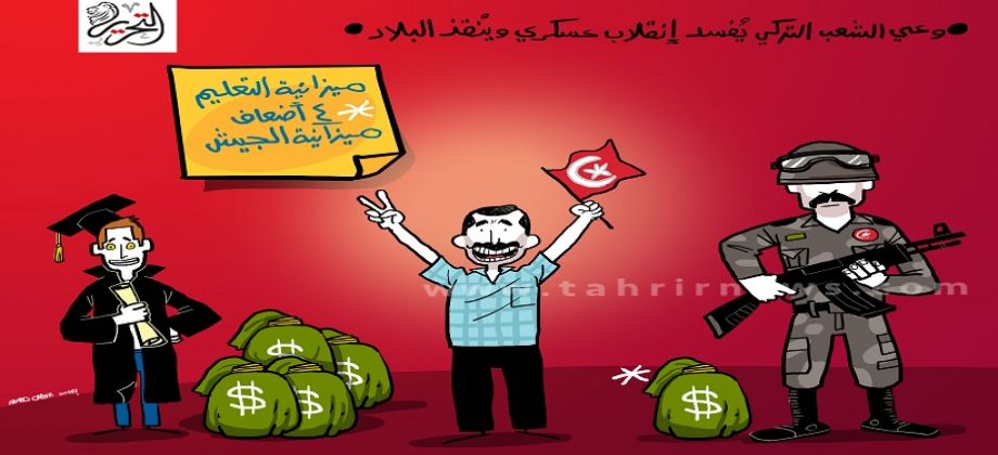 ونشر “التحرير” رسمًا كاريكاتيريًا، ذكر فيه أن ميزانية التعليم تعادل 4 أضعاف ميزانية الجيش مما يخلق وعي للمواطن التركي.