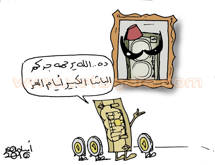 – قارن “فيتو” في كاريكاتير بين حال الجنيه المصري قديما وقيمته الحالية.