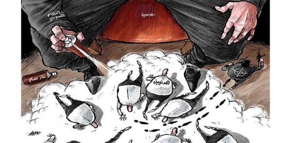 – في الشأن العربي، نشر “الشرق الأوسط” كاريكاتيرًا عن مأساة سوريا .