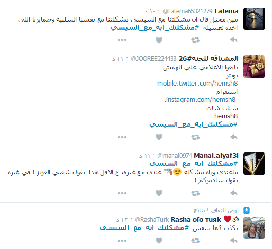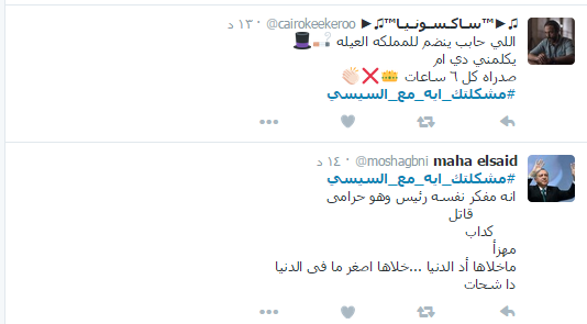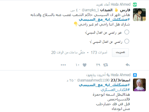 بالتزامن مع تبني الإعلام المصري حملة جديدة لجمع 40 مليون توقيع بهدف تمديد الفترة الرئاسية لـعبدالفتاح السيسي إلى 8 سنوات بدلاً من 4 سنوات، دشن عدد من مستخدمي مواقع التواصل الاجتماعي هاشتاج يحمل عنوان “مشكلتك إيه مع السيسي؟”، وذلك لمعرفة الأسباب التي أدت إلى قيام البعض بمهاجمته في الفترة الأخيرة.