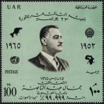 اصدرت هيئة البريد طابعا تذكاريا عليه صورة الرئيس الراحل جمال عبد الناصر، عام 1965،في العيد الثالث عشر لثورة يوليو.
