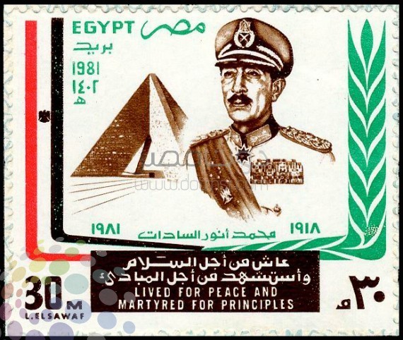 فى عام 1981 صدر طابعا تذكاريا، تخليداً لذكرى السادات، وكُتب عليه “عاش من أجل السلام، واستشهد من أجل المبادئ”.