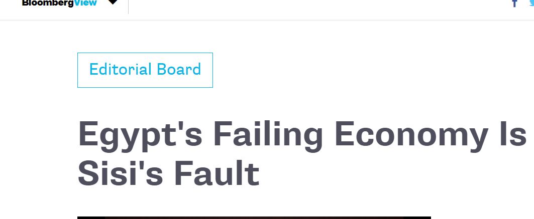 خصصت وكالة “بلومبرج” للأنباء افتتاحيتها لتسليط الضوء على الشأن المصري، متهمة عبدالفتاح السيسي بأنه السبب في تردي الوضع الاقتصادي المصري.