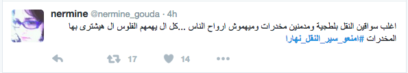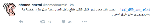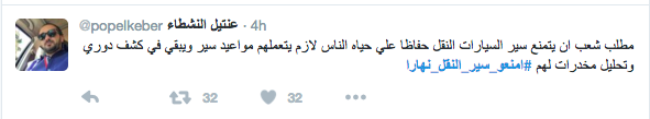 ودش رواد موقع التواصل الاجتماعي تويتر ، هاشتاج “امنعوا سير النقل” ، وجاءت مشاركاتهم كالتالي :
