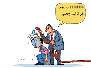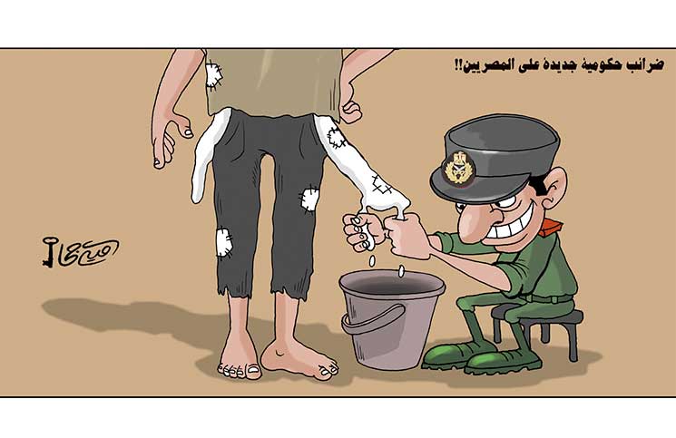 ونشر  “القدس العربي” رسما ساخراً من الضرائب الحكومية التي تفرضها الدولة على المصريين، في حين يحتاج المواطن إلى الدعم .