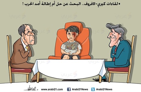 ووضعت “عربي 21” صورة الطفل عمران في كاريكاتير اليوم، لتعبر عن الاجتماعات التي لا تصل لحل للازمة بين لافروف وكيري