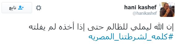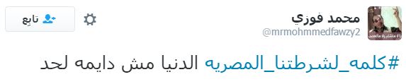 دشن رواد موقع التواصل الاجتماعي “تويتر”، هاشتاجًا تحت اسم “#كلمه_لشرطتنا_المصريه”، تعقيبًا على تجاوزات أفراد الشرطة المصرية المتكررة تجاه المواطنين.