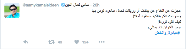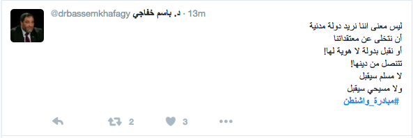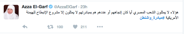 وأكد :”لا أدري بأي صفة جلس “أنصار الشرعية” مع شركاء الانقلاب في واشنطن؟ لم اجتمعوا معهم وكأنهم أعضاء لجنة تأسيسية لوضع الدستور ستعرض مسودتها على الشعب”؟
